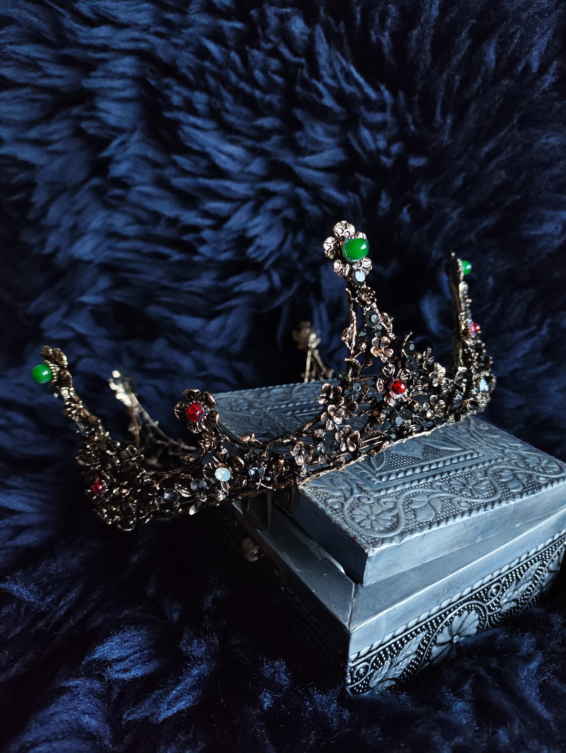 Een ronde kroon welke rijkelijk is bezet met mooie steentjes.